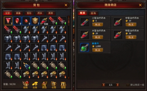 在随身商店中,可以消耗货币购买游戏日常需要的药水等消耗类道具,也可以对已出售的道具进行回购。这样就再也不怕卖错东西啦!