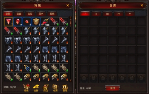 点击背包系统下方的[仓库]按钮,可以打开仓库。