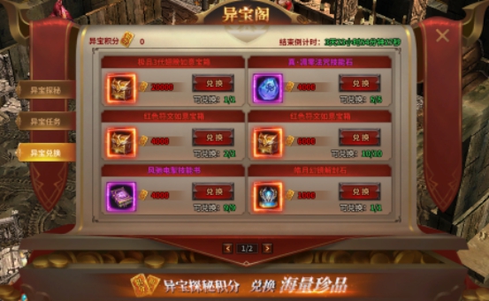 玩家在异宝探秘中可以获得异宝积分,异宝积分可以在异宝兑换中兑换商品,部分异宝限量出售,走过路过前往不要错过哦!