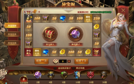 除了使用异宝骰子,玩家还可以使用神奇骰子来选择移动指定点数,想去哪就去哪!当棋子在棋盘上移动达到指定圈数时,还可以领取圈数奖励,神圣的 天使耳环唾手可得!!