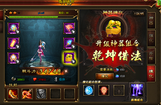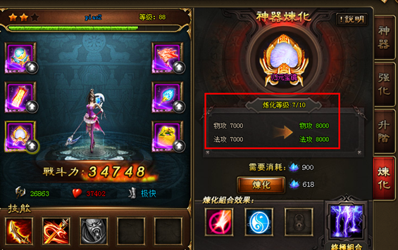 3. 炼化神器可提升人物属性。
