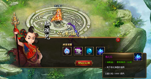 12. 挑战月光宝盒炼宝Boss,有机会获得炼化神器的必备道具“炼化石”。