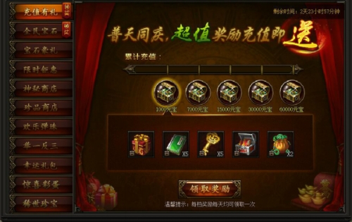 活动期间,充值元宝即可领取五档丰厚奖励,每天均可领取一次,不容错过!