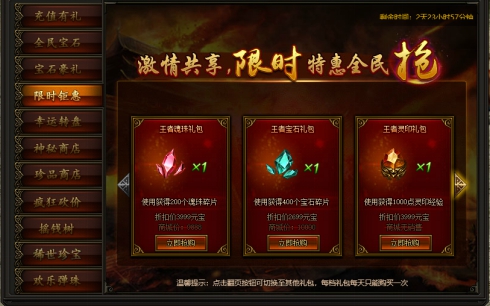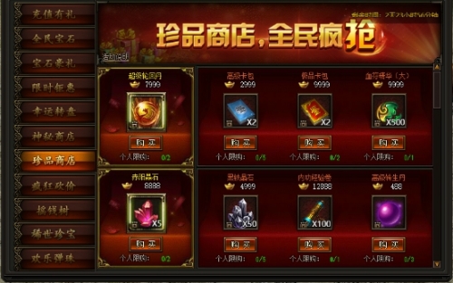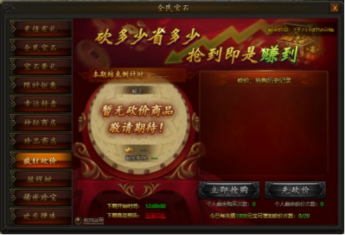 活动期间,每天会随机刷新一批特价道具,花费少量元宝即可购买,每个道具均有每天最大个人购买次数限制,部分道具有购买vip等级限制,买到就是赚到,机会不容错过!