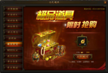 活动期间,每隔一段时间,商城限时上架一批新道具(全服限量),每轮每个角色有最大购买次数,折扣多多,不容错过。