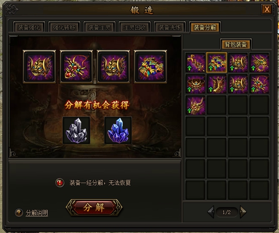 2)装备分解