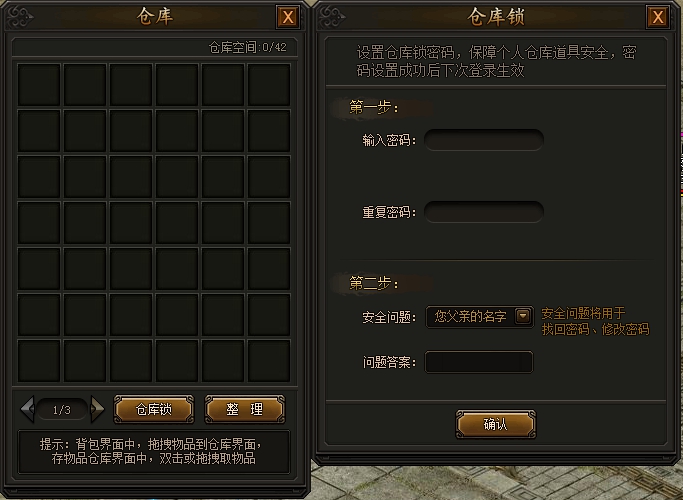 1)为降低账号被盗后的仓库财产风险,增加仓库锁安全功能进行适当保障;