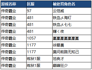 猎豹传奇霸业12月6日近期外挂使用者处罚名单