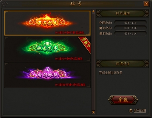 3、玩家使用称号道具后称号会在称号列表中显示,称号过期后即会从列表中消失