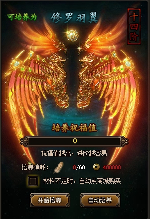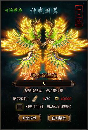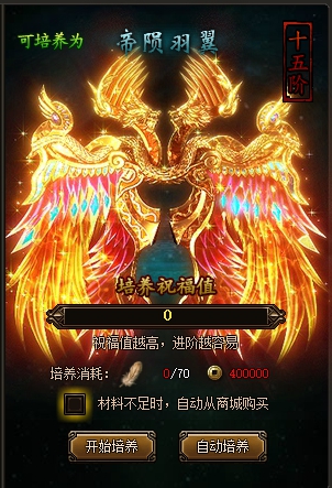 玩家只要达到主宰羽翼之后,便可继续提升羽翼等级;