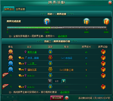 本服内,当玩家通关某一层跨界圣殿时,跨服进度点+1
