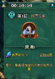 每层奖励不同,每通关一层可获得一部分跨界碎片