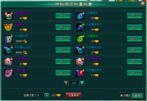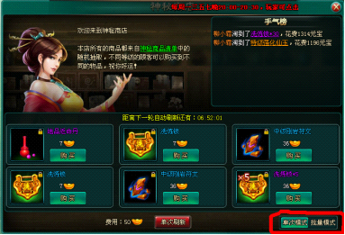 人物VIP等级达到4或以上在神秘商店中会开启批量刷新功能: