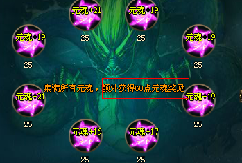 容器中的元魂越接近上限时,存储的元魂数量会较低容量时更多,且当8个容器都集满元魂时,吸收元魂可获得额外的元魂奖励;