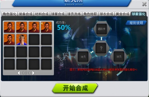 1.使用两张相同的球星卡有50%概率使球星的强化等级+1.