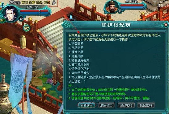 2.建议设置呃棉麻不要与游戏登录密码相同