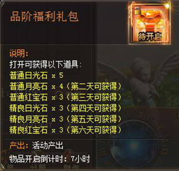 活动规则:活动期间首次在线满60分钟可获得品阶福利礼包*1。