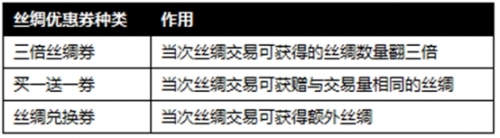 2.因丝绸商铺中的优惠券,将在每天0点重置清空。因此再次提醒,已获得的优惠券奖励,尽请在当天清空前尽快使用。