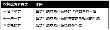 2. 因丝绸商铺中的优惠券,将在每天0点重置清空。因此再次提醒,已获得的优惠券奖励,尽请在当天清空前尽快使用。