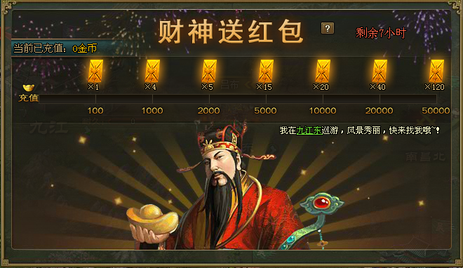 注:充值所赠送土豪金红包,可累积领取(例:累计充值满50000金币,共可获赠205个红包)