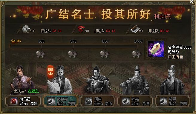 2. 每天结交名士有次数限制,名士每天会刷新;