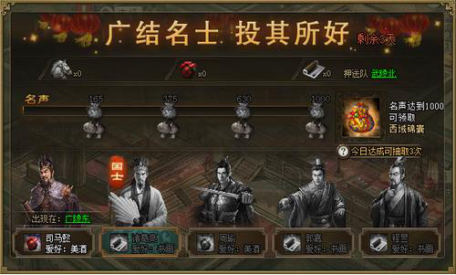 3.名声累积满了将不再继续增加,名士也将不再刷新。