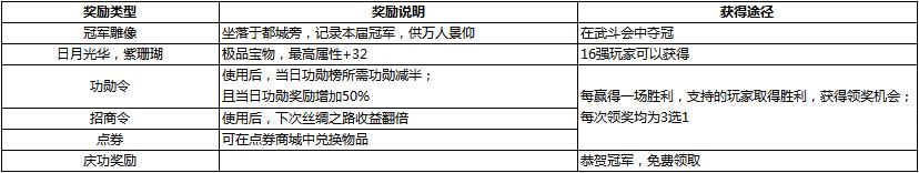 3. 赛制类似跨服争霸赛,每个小组均决出一个冠军,具体请查看武斗会公告;