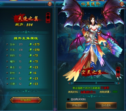 众所周知,仙翼可提升主角的大量属性,从而进一步提高主角的战斗力,当然仙翼也需要逐步的进阶,才可以提高属性,同时也会逐步改变仙翼的炫酷外形,光彩夺目!