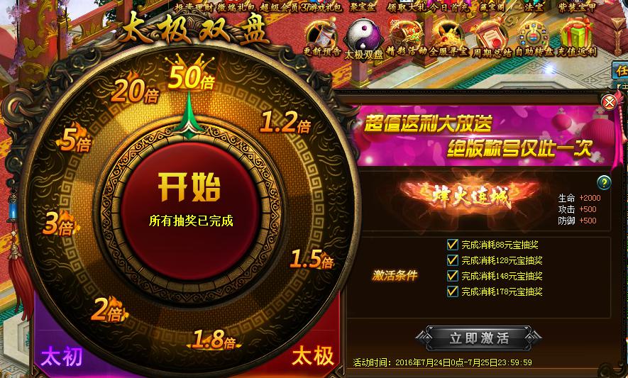完成太初转盘后可开启更高级的太极转盘,更多惊喜等着您!