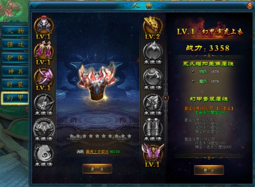 收集到足够的幻甲碎片可以激活对应部位的幻甲,激活/进阶后能获得超值的永久属性。