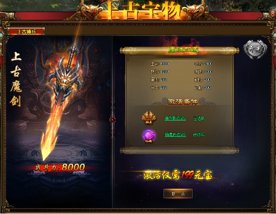 当玩家满足一定的条件之后,可以通过花费元宝来激活上古神兵!