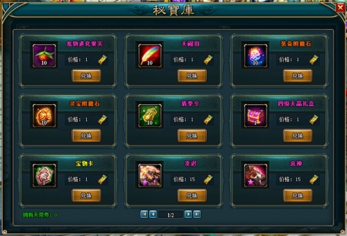 3、抽取天帝宝藏有几率获得“天帝券”,使用天帝券可进入秘宝库兑换界面兑换不同的宝物奖励。