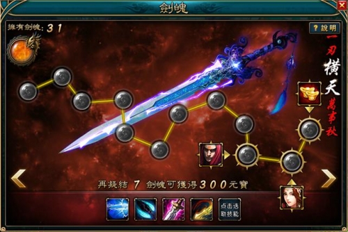 “一刃横天万世秋,此路黄泉同九幽。”新的剑魄阶段已经开启,九劫剑的“横天”和“九幽”阶段,将为你带来战力的超强提升,还会打开新的玉石商店!