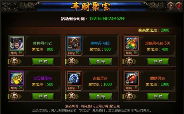 3、活动结束后,将无法使用剩余“聚宝点”兑换物品,建议您在活动期间内及时兑换;