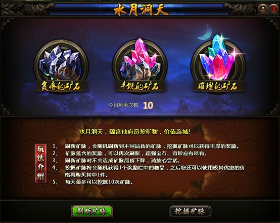 2、 刷新矿石后会随机出现一种,挖掘后,获得丰厚奖励