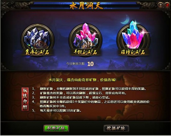 2、 刷新矿石后会随机出现一种,挖掘后,获得丰厚奖励