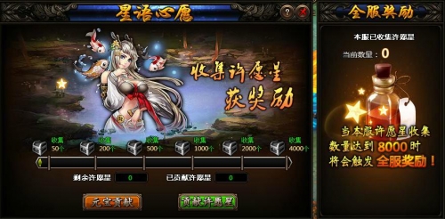 3、贡献许愿星可以获得对应的礼包奖励,也可以通过元宝进行贡献