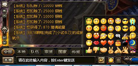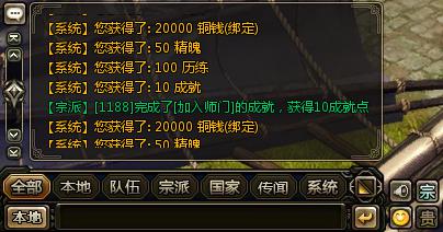 聊天系统包括本地、队伍、宗派、国家、传闻、系统这六个频道。
