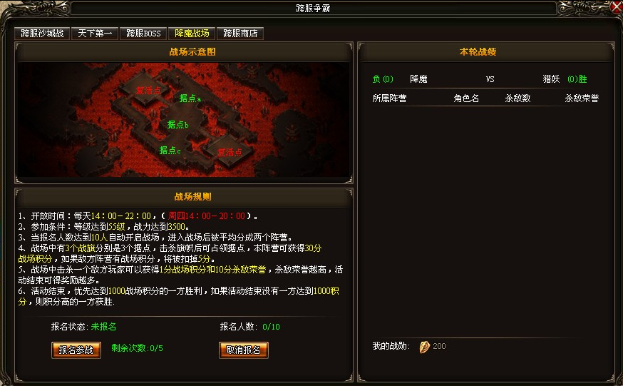 7、 每名玩家均有5次参战的机会,当两个阵营分出胜负后,在活动时间内均可再次报名参战。