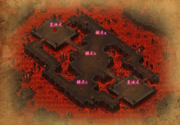 4、 战场中有3个战旗分别为3个据点,击杀后可占领据点,本阵营可获得30分战场积分,如果敌方阵营有战场积分,将被扣掉5分。