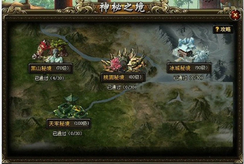 4. 神秘之境玩法,每天0:00 重置。重置之后回到神秘之境主界面可以再次选择秘境进行挑战。