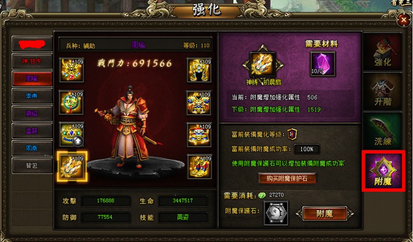 2. 附魔强化属性值随当前装备的基础属性和强化属性值的提升而提升。
