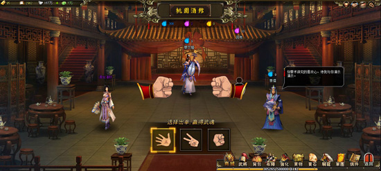 在《龙将2》中,每回对酒系统将为玩家随机指派三名对手,所携带的武魂也是依次递增,玩家只有战胜了前面那个,才能与后面那个继续划拳。武将出拳都是随机的,玩家只用凭感觉选择屏幕下方的“石头、剪刀、布”中任意一个按钮猛地点击下去,胜负均有50%的把握。如果你在对酒中获得全胜,不仅可以获得武将所携带的全部武魂,更可以获得1点金魂的额外奖励!