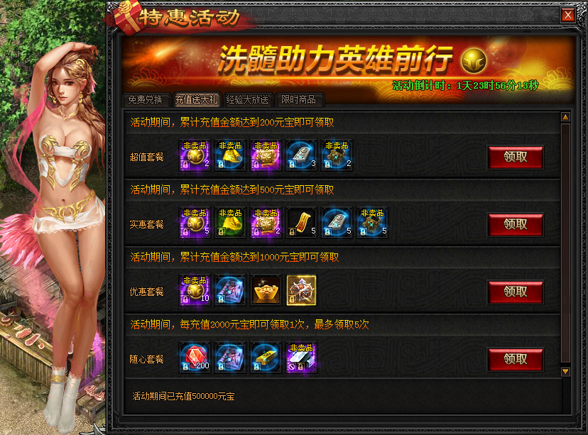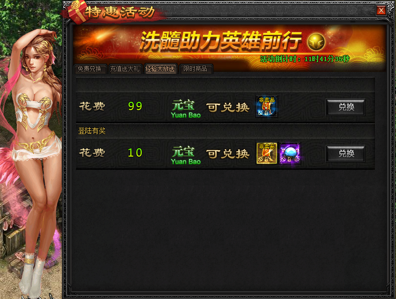 洗髓金丹*2、超级双倍经验卷轴*1、BOSS召唤令包*1、