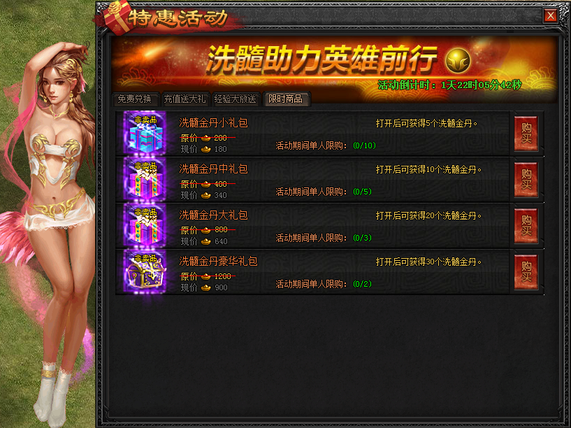 洗髓金丹大礼包:打开获得20个洗髓金丹 |