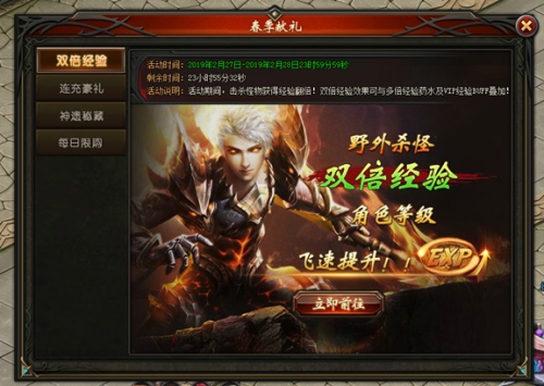 活动说明:活动期间,击杀怪物获得200%经验