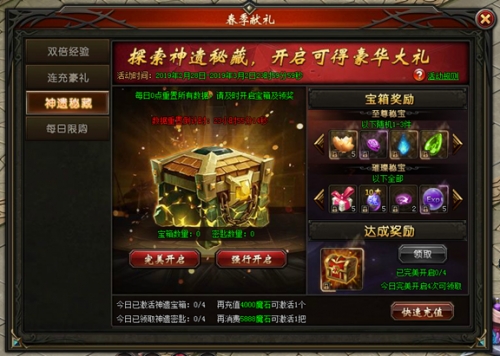 1) 活动期间,每天每充值5000魔石可激活1个神遗宝箱