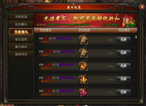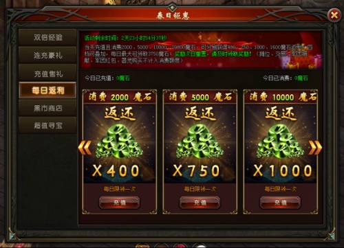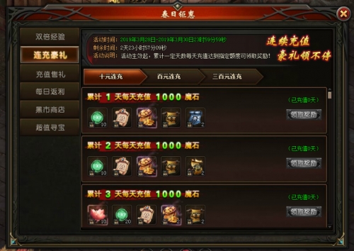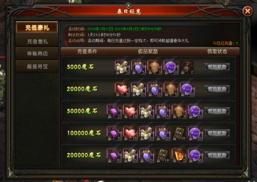 活动说明:活动期间,每日充值达到一定档次,可领取超级豪华大礼!