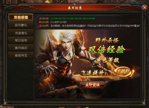 活动说明:活动期间,击杀怪物获得200%经验