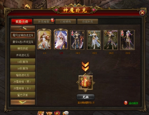 扑克兑换:收集指定扑克组,即可兑换各种极品奖励